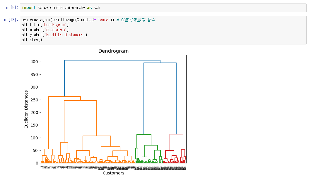# method= 'ward' 연결시켜줄때 방식