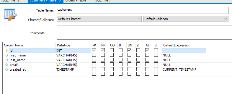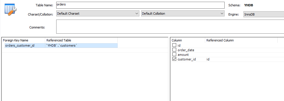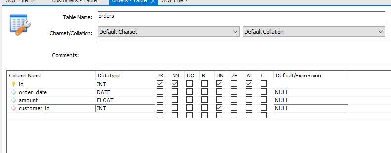 ※ 테이블에서 연결시킬 id컬럼에 UN을 체크 해야한다