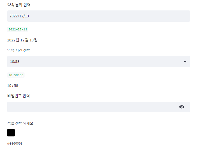 year = st.number_input('출생년도를 입력하세요',1900, 2300) # 최소, 최대값 제한
