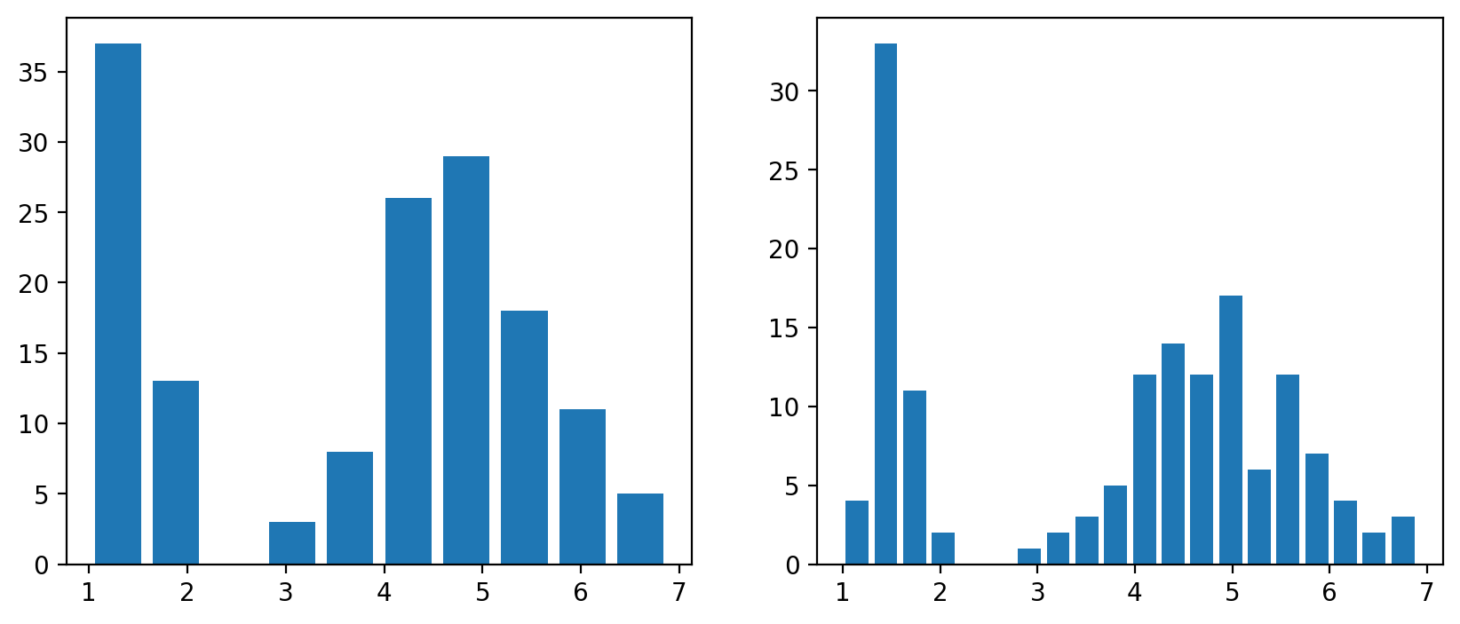 plt.hist(data=df, x= 'petal_length', bins= 20, rwidth= 0.8)