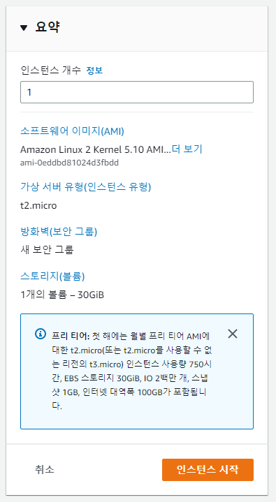인스턴스 유형 프리티어 사용가능한 것으로 선택