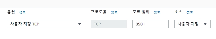 유형은 사용자 지정TCP, 포트범위 (8501), Anywhere로 설정해서 저장하면 해당 사이트에 접속 가능하다