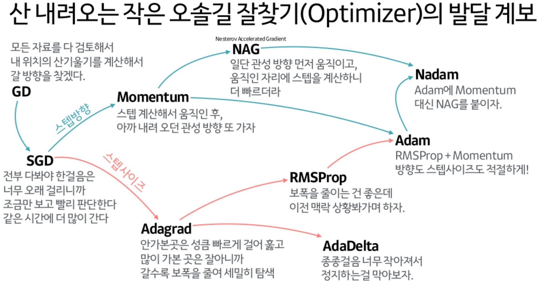 Optimizer란 loss function을 통해 구한 차이를 사용해 기울기를 구하고
