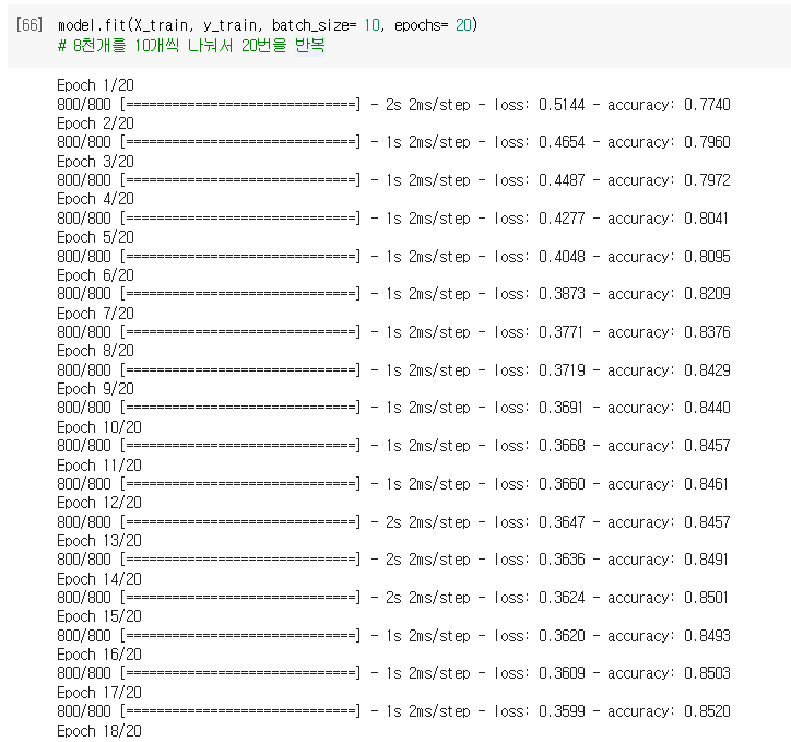 epochs= n : 해당 데이터를 몇번 반복해서 학습할지 값을 입력