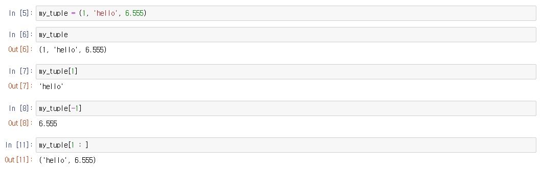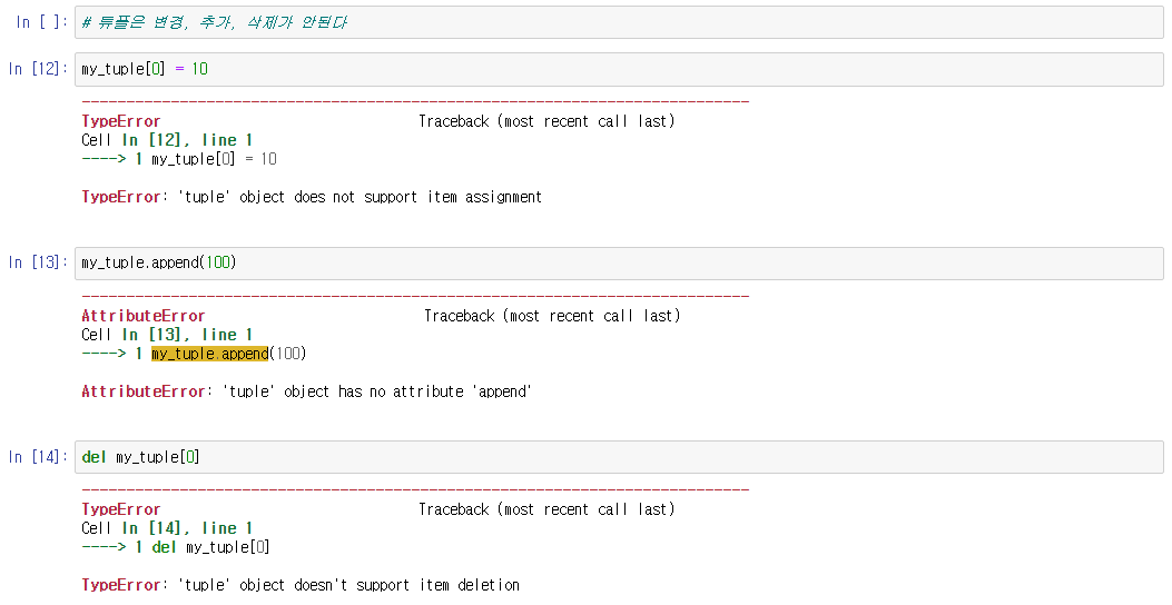 - 튜플은 데이터 수정, 추가, 삭제가 불가능