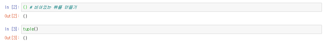 비어있는 튜플 만들기는 아래처럼 두가지 방법으로 생성할 수 있다