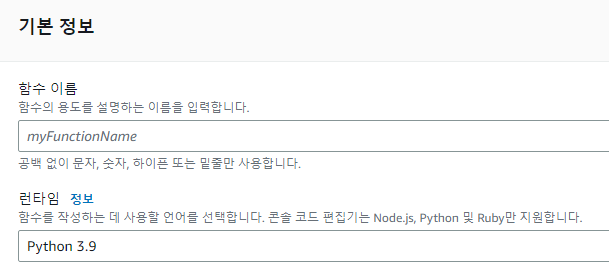우선 AWS 홈페이지에 들어가서 Lambda 함수생성의 런타임 파이선 버전을 확인하고