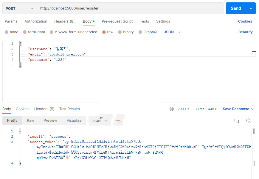 ※ success라 나오고 암호화된 인증토큰이 나온다