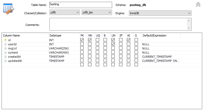 ※ 테이블 설계는 아래 사진처럼 했다