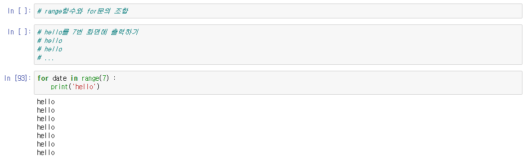 range 함수는 for문에 아래 예처럼 사용할 수 있다