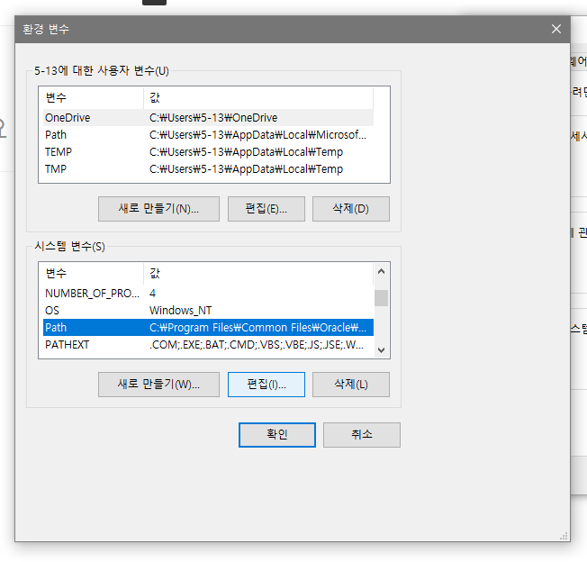 시스템 변수중 Path를 찾아 편집을 눌러주고 마지막에 새로 만들기를 눌러