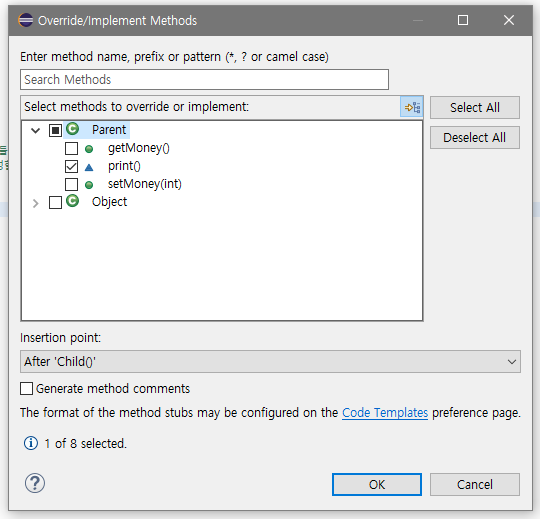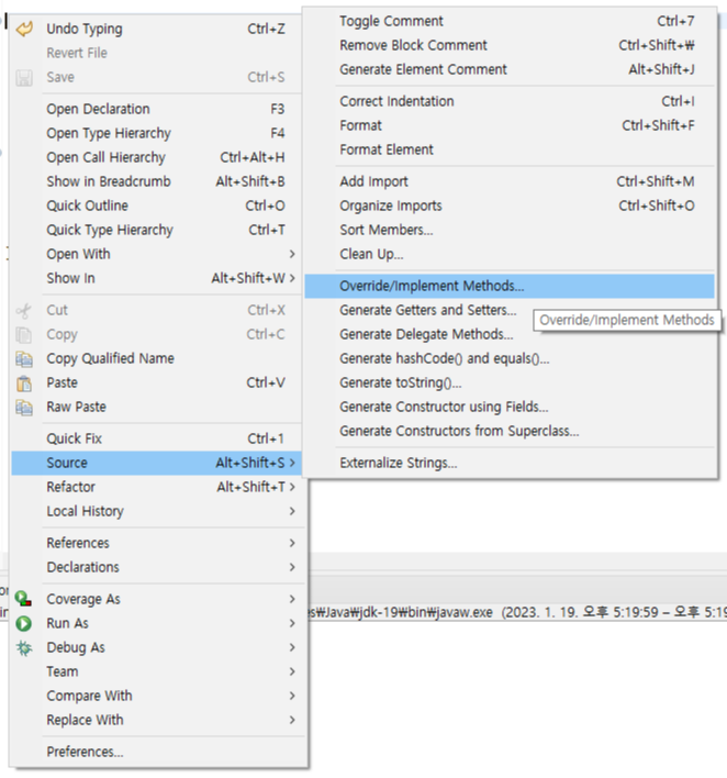 + 이클립스에서는 마우스 오른쪽 눌러서 소스의 오버라이드를 클릭해 간편하게 만들 수 있다