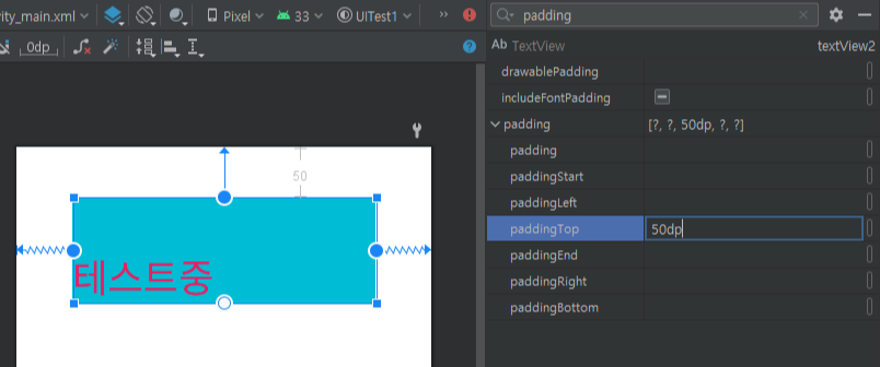 padding 사용시 뷰와 컨텐츠의 간격을 조절 할 수 있다(텍스트뷰와 텍스트 사이의 공간 조절)