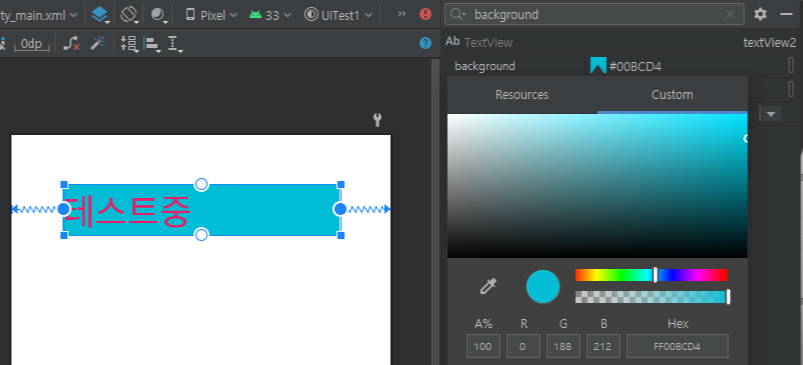 텍스트뷰의 배경색을 지정하고 싶을때는 background에 색을 지정해준다