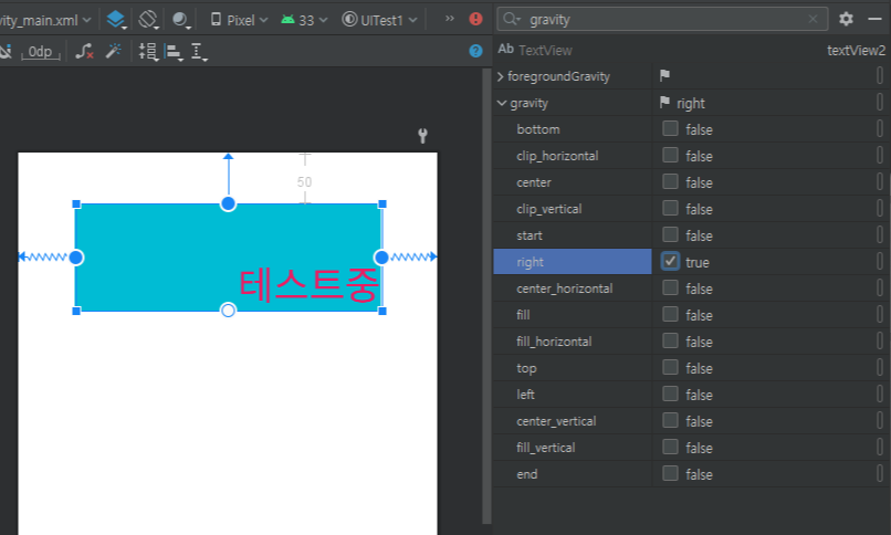 gravity 사용시 글자(텍스트)를 정렬할 수 있다