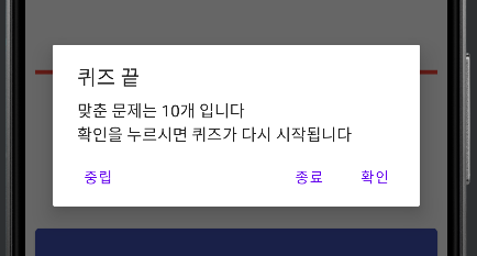 builder.setTitle("퀴즈 끝");