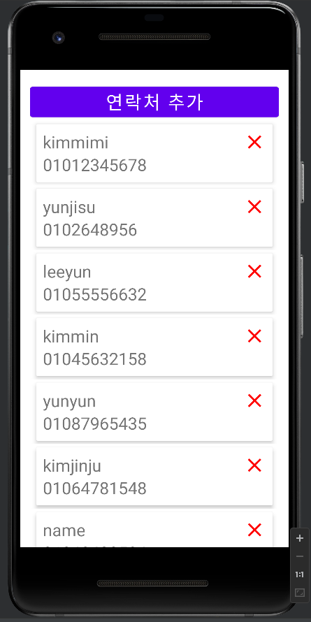 전화번호 목록을 만들거라서 아래 이미지처럼 화면을 구성해줬다