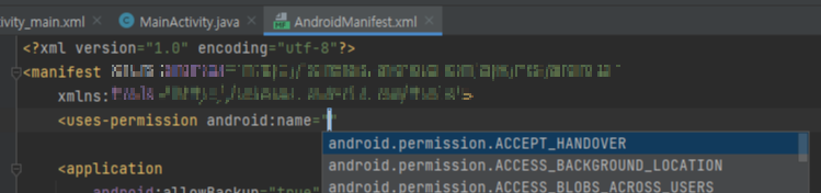 manifests 폴더에 AndroidManifest.xml 파일의 application 위쪽에 아래 코드를 입력해준다
