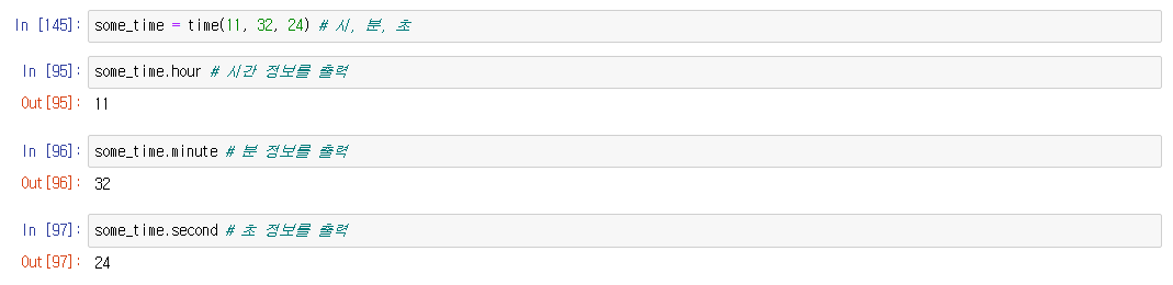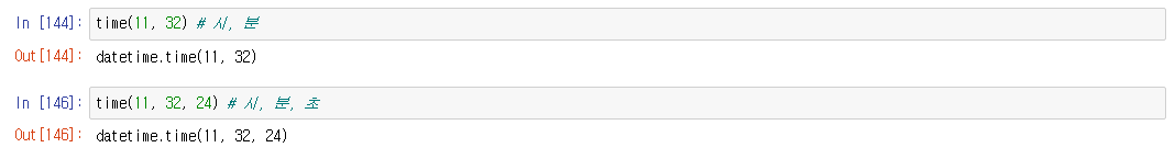 time(시, 분, 초) : 입력한 시간을 파이썬이 이해할 수 있는 형태로 변환한다