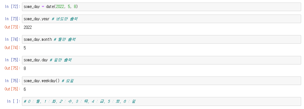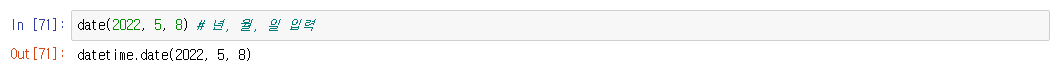 date(년, 월, 일) : 입력한 날짜를 파이썬이 이해할 수 있는 형태로 변환한다