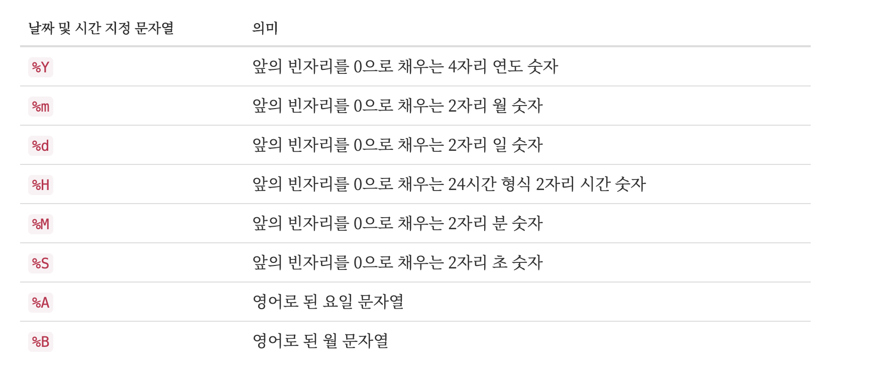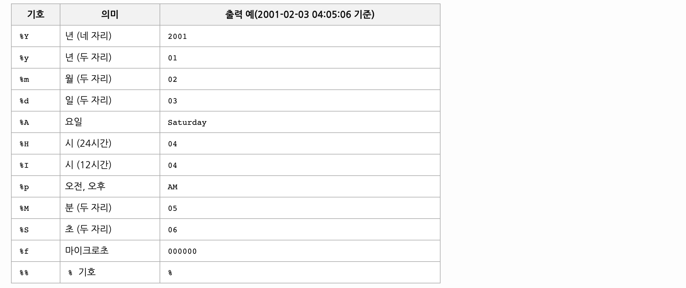 .strftime(%형식, %형식) : 서식을 지정해 데이터 형식을 변환해 값을 출력한다