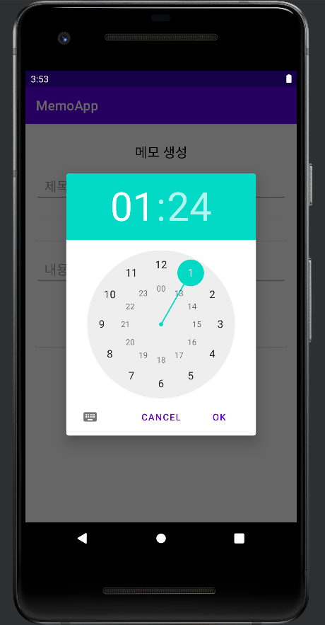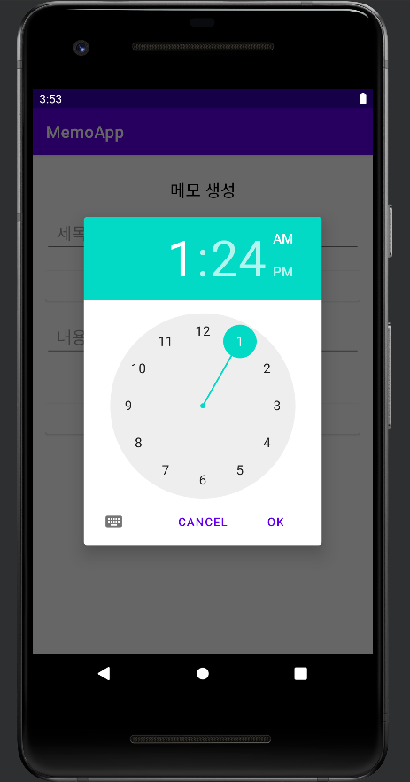 버튼을 클릭하면 TimePickerDialog로 시간을 입력받기