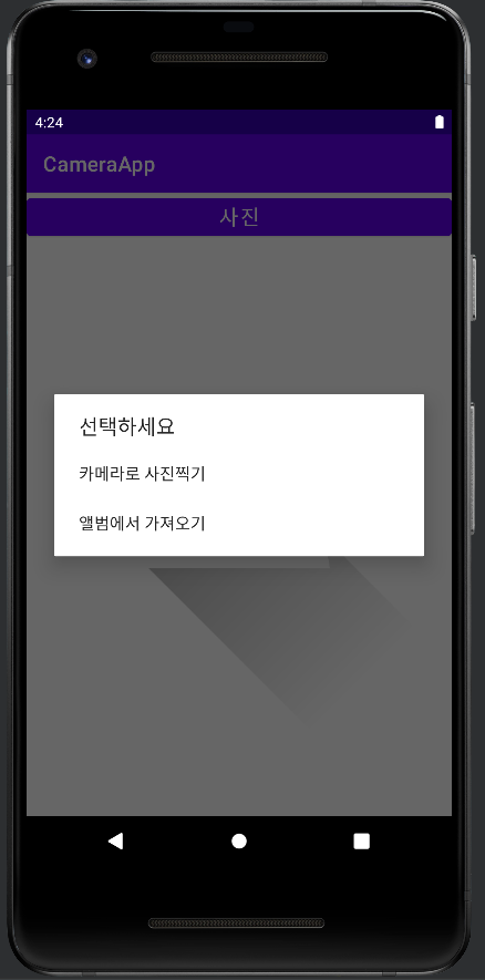※ strings.xml 파일에 카메라 실행을 첫번째로 입력했기 때문에 0번이다