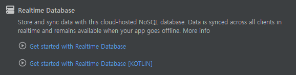 사용할 리얼타임 데이터베이스의 Get started with Realtime Database 클릭해 두가지 다 연결해준다