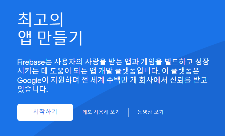홈페이지(https://firebase.google.com/)에 가서 프로젝트를 하나 만든다