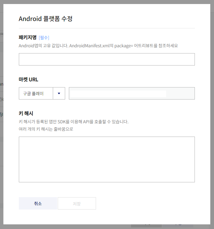 좌측의 플랫폼으로 들어가서 Android 플랫폼 등록을 클릭하여 등록해주는데