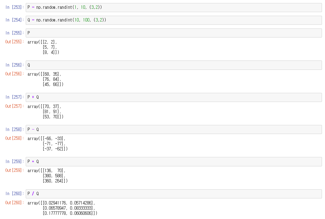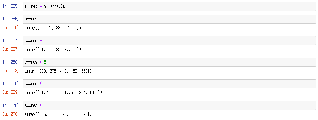 넘파이는 연산을 입력해주면 각 요소마다 연산이 수행된다