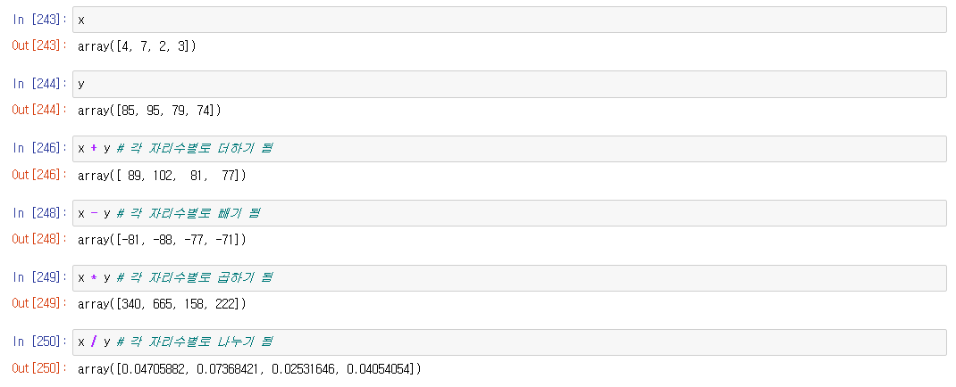 넘파이는 연산을 입력해주면 각 요소마다 연산이 수행된다