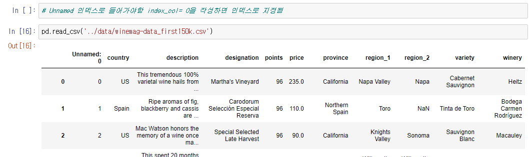 # index_col= 0 파일을 불러왔는데 Unnamed : 0 일때 입력하면 해당 컬럼이 인덱스로 지정됨