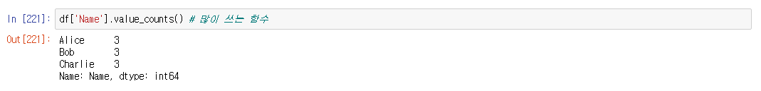 >>> df['컬럼'].value_counts()