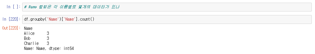 >>> df.groupby('그룹할 컬럼')['값을 구하고싶은 컬럼'].함수
