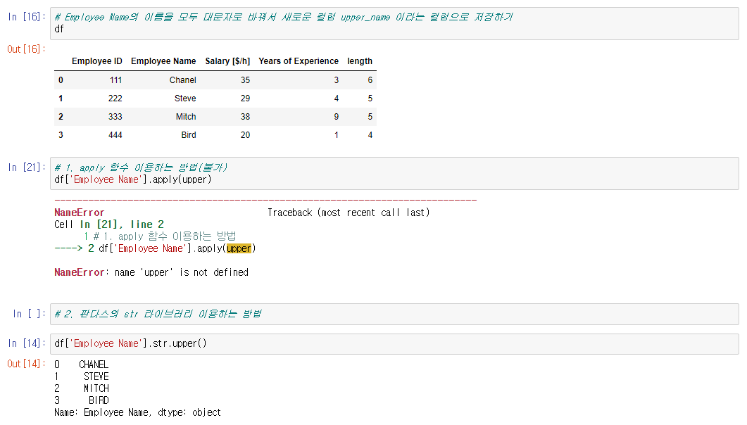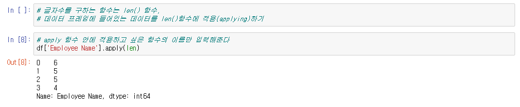 apply 메서드로 함수적용이 불가할때는 판다스의 str 라이브러리 이용하는 방법도 있다