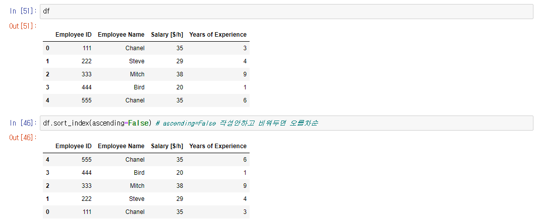 df.sort_index() : 데이터 프레임의 인덱스를 오름차순 정렬한다