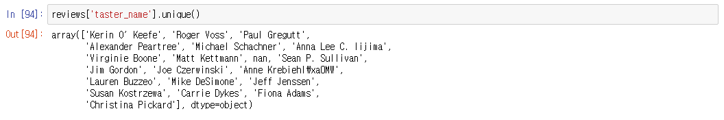 unique() : 데이터에 유일한 값들이 어떠한 종류가 있는지 알려준다
