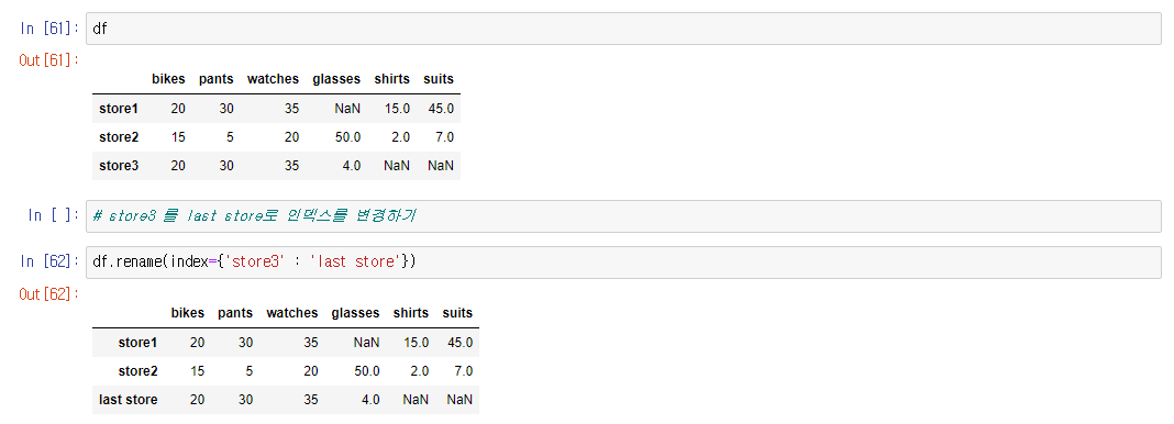 df.rename(index={'기존 인덱스' : '입력하고싶은 인덱스'}) : 기존에 있는 인덱스명을 변경한다