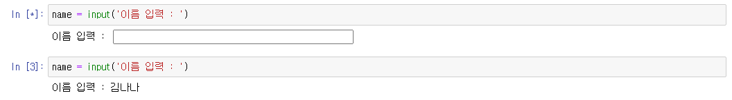 위에서 input 함수 안에 원하는 문자열을 써주면 화면에 출력되면서 유저에게 값을 입력을 받게 된다