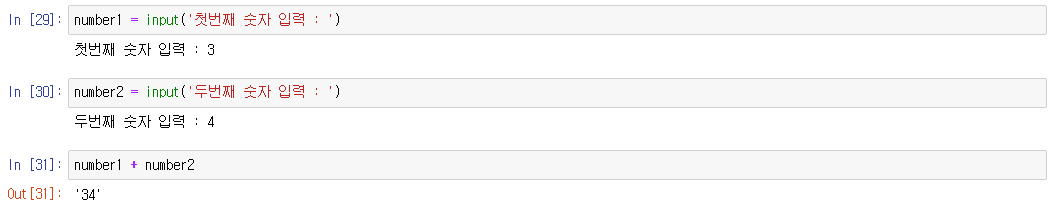 이렇게 되는 이유는 유저가 숫자를 입력하든 문자를 입력하든 input() 함수는 전부 문자열로 처리를 하기 때문이다