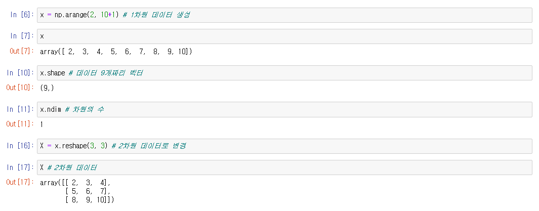 (a) 한개 입력시 1차원 데이터, (행, 열) 로 입력시 2차원 데이터로 변경한다