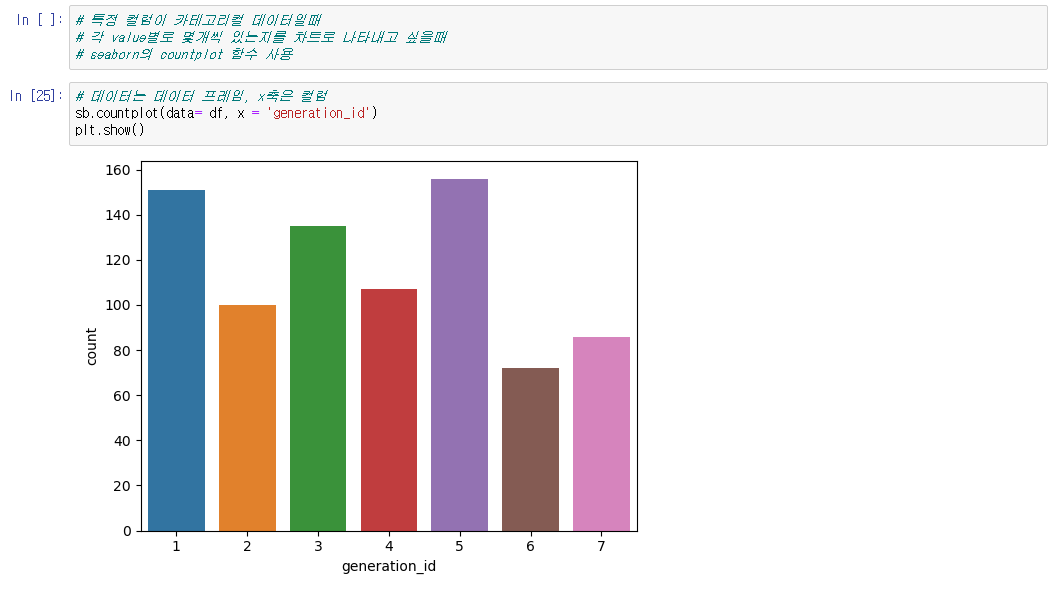 sb.countplot() : 입력한 값으로 갯수별 막대형 차트를 만들어준다