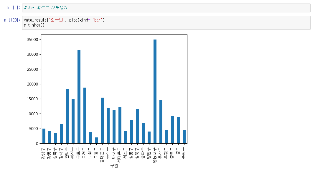 # 파라미터에 kind= 'bar' 입력시 bar모양 차트가 생성