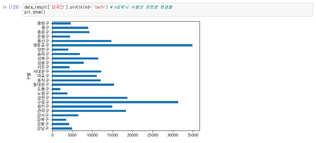# h를 추가 입력시 y축을 기준으로 차트 생성