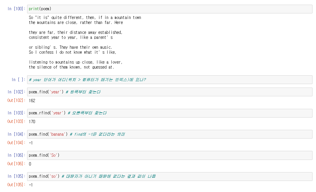 이때 왼쪽부터 찾을때는 find() 함수를 사용하고, 오른쪽부터 찾을때는 rfind() 함수를 사용한다
