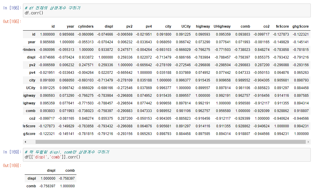 >>> df[['컬럼1','컬럼2']].corr()