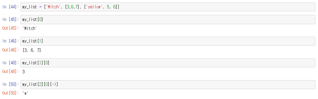 my_list 의 인덱스는 다음과 같다