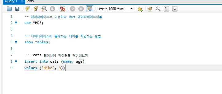 -- 데이터베이스로 이동하라 use 데이터베이스이름