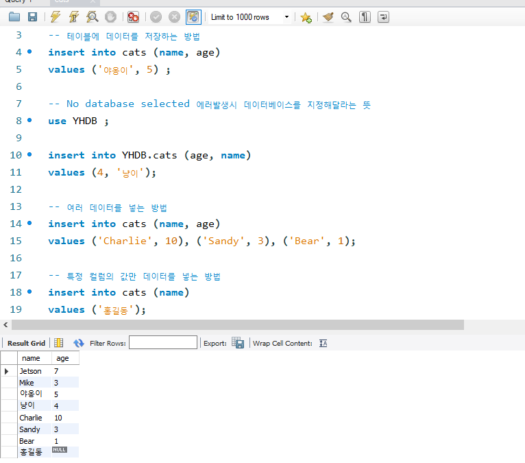 📝MySQL Workbench 테이블 데이터 넣기 (하나의 데이터 넣기 / 여러 데이터 넣기)